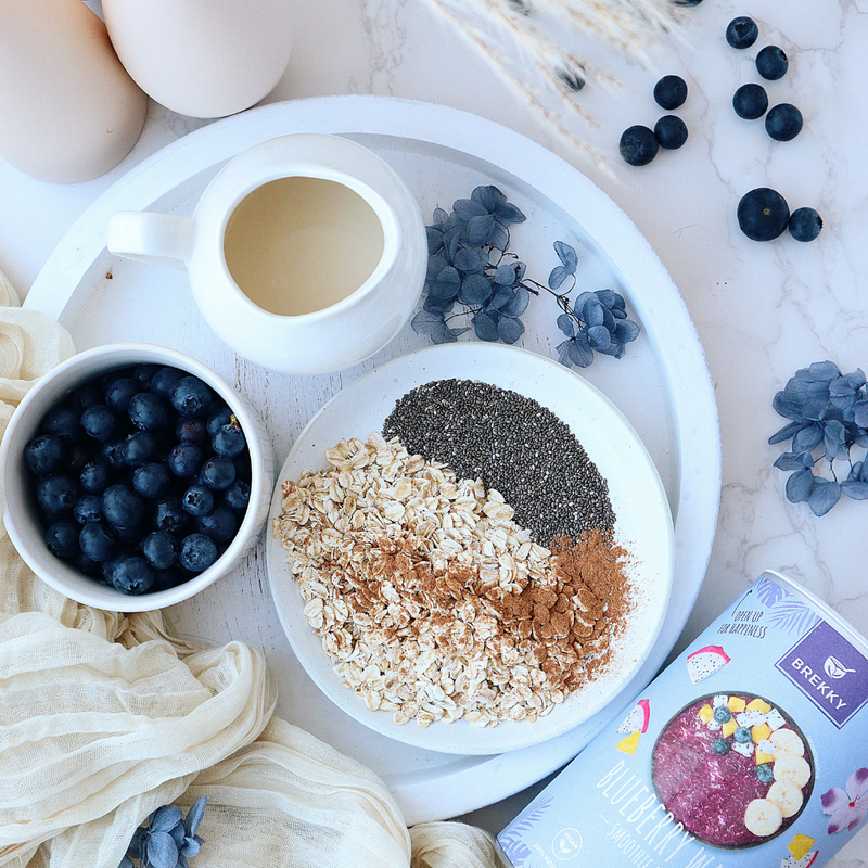 - In einer mittelgroßen Schüssel das Blueberry Wave, die Haferflocken, Chiasamen und den Zimt vermengen. Rühre alles gut um, damit sich die Zutaten gut vermischen.