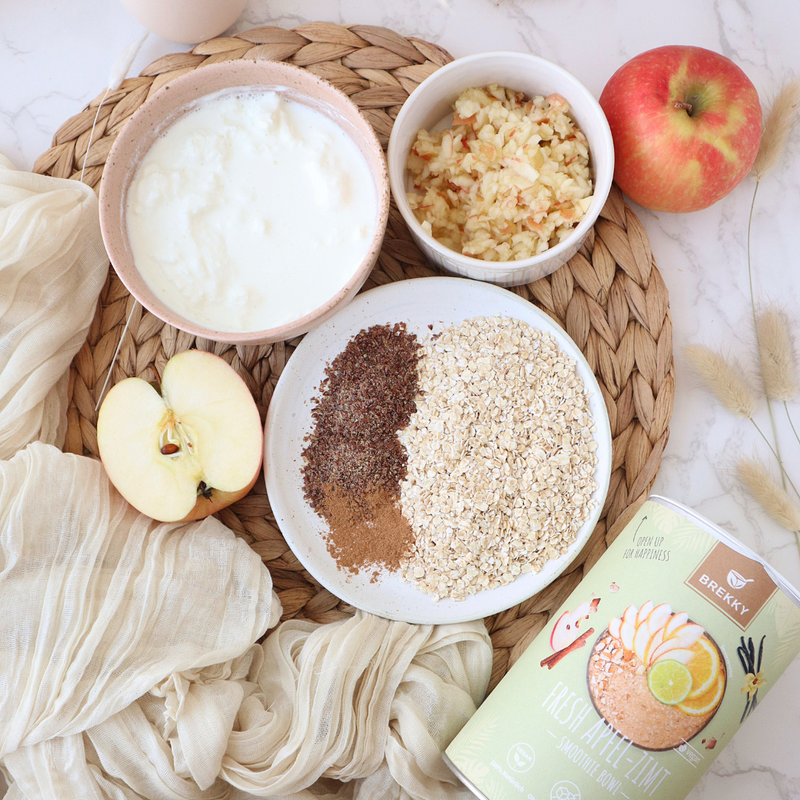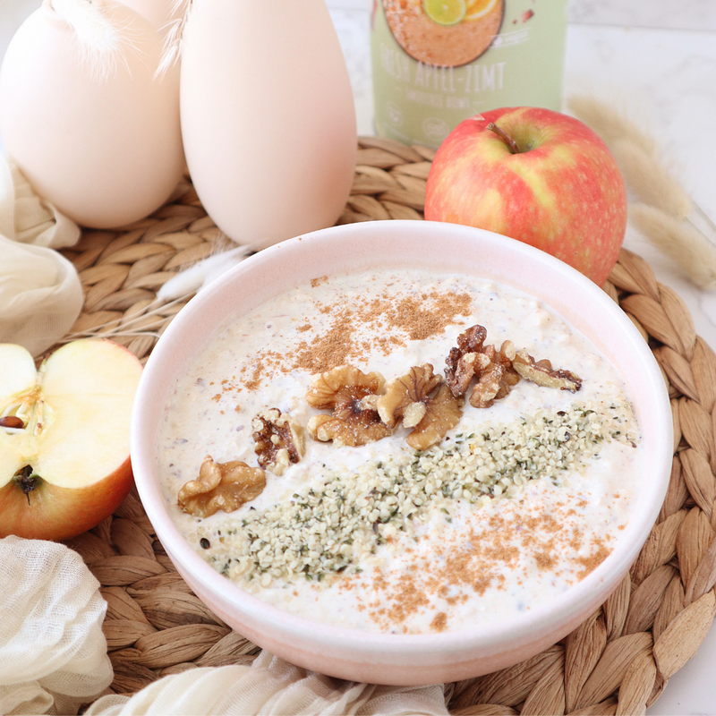 - In einer Schüssel die Fresh Apfel Zimt Müsli, Haferflocken, gemahlene Leinsamen und den Zimt vermischen, bis alle trockenen Zutaten gut kombiniert sind.