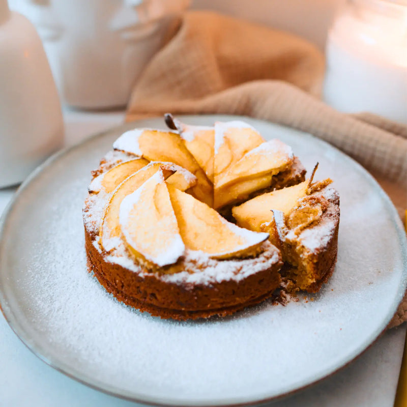 - In einer Schüssel Mehl, Brekky Fresh Apfel Zimt, Zucker, Butter, Eier, Backpulver und Zimt vermischen und zu einem Teig kneten