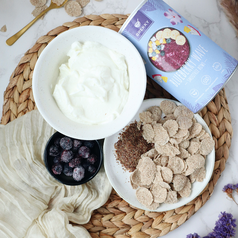 - Gib Blueberry Wave, gemahlene Leinsamen und Quark- oder Joghurtalternative in eine Schüssel.