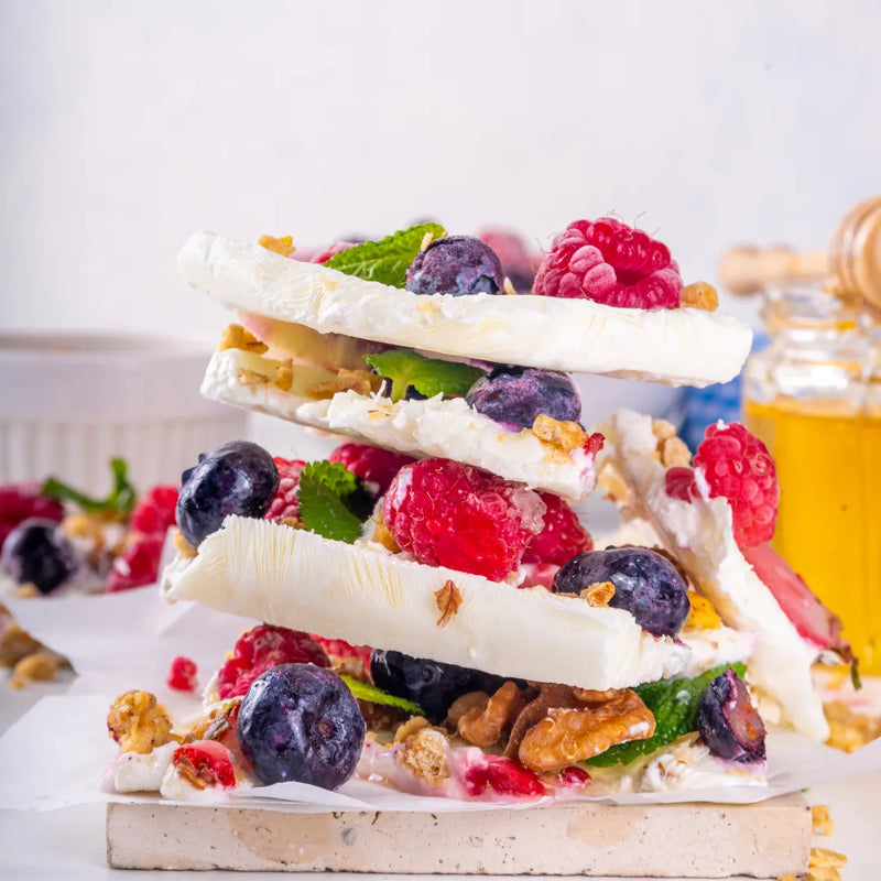 - Griechischen Joghurt, Agavendicksaft und Proteinpulver verrühren