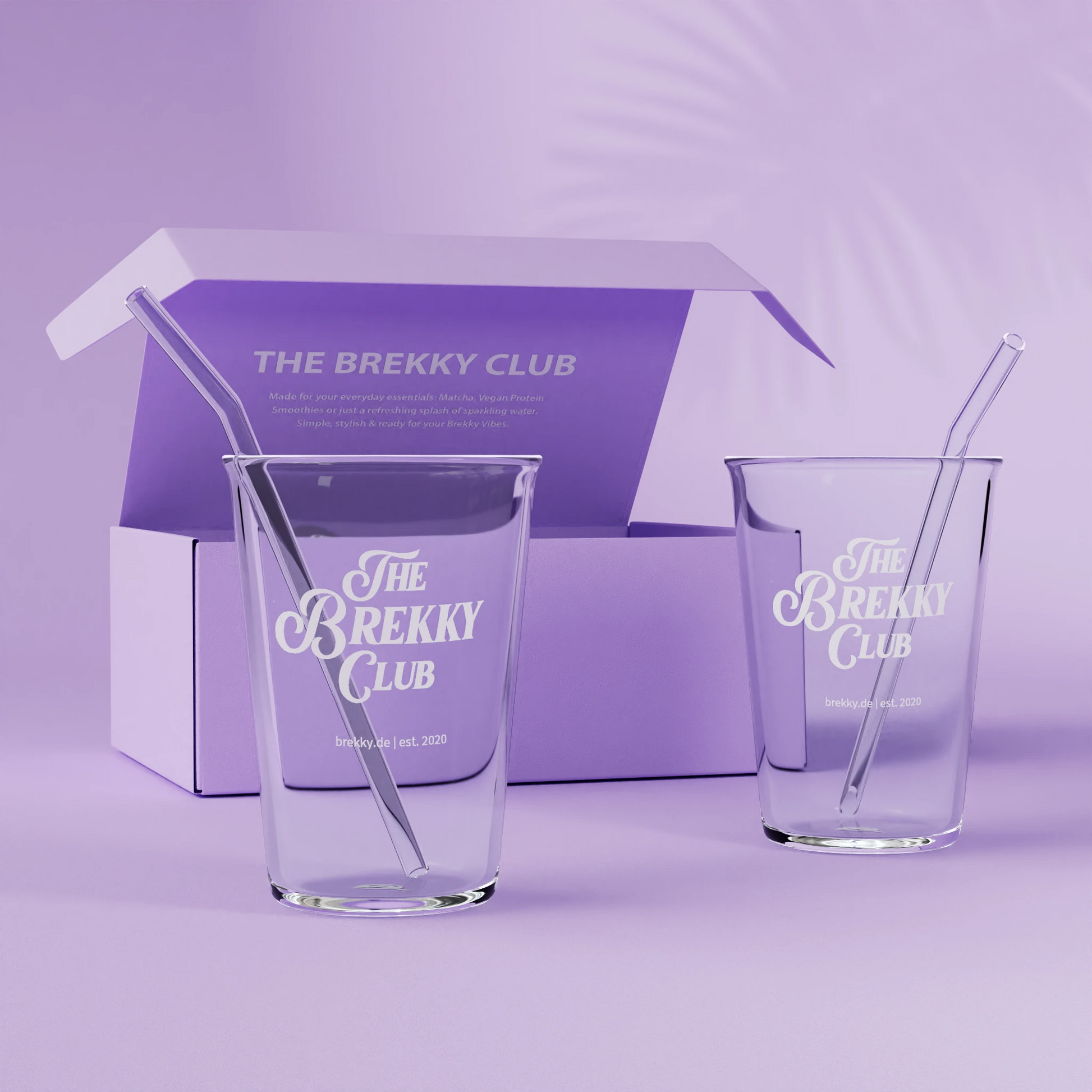 The glasses are made of glass and come in a practical set of two with two matching glass straws.