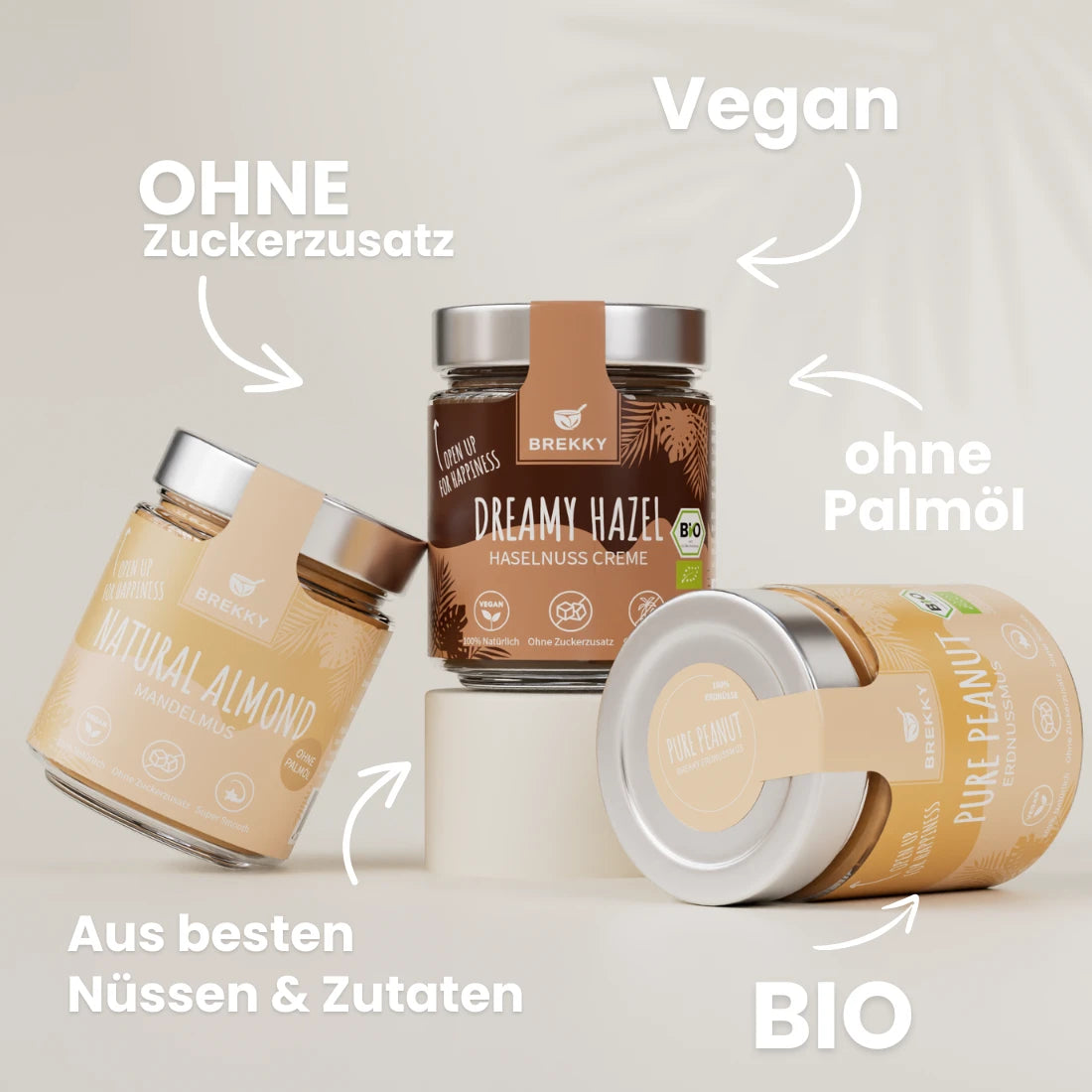 Bei dem Brekky 4er Toppings Wahlset kannst du dir deine Lieblingssorten unserer knusprigen Toppings, Granolas oder Spreads aussuchen – perfekt zum Verfeinern deiner Smoothie Bowls, Bowls oder Joghurts. Hier kannst du das Set jetzt entdecken.