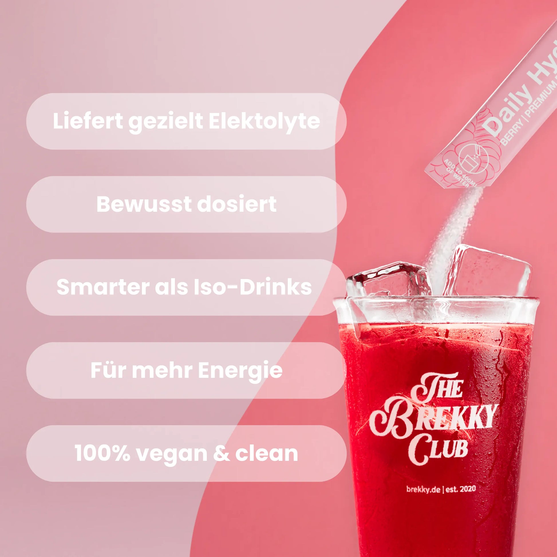 Die Hydration Sticks eignen sich für alle, die ihren Körper zuverlässig mit Flüssigkeit und wichtigen Mineralstoffen unterstützen möchten - ob im Training, im hektischen Alltag, bei hohen Temperaturen oder immer dann, wenn du viel schwitzt oder dich ausgelaugt fühlst. Sie sind eine einfache Lösung, um deinen Elektrolythaushalt schnell wieder ins Gleichgewicht zu bringen.