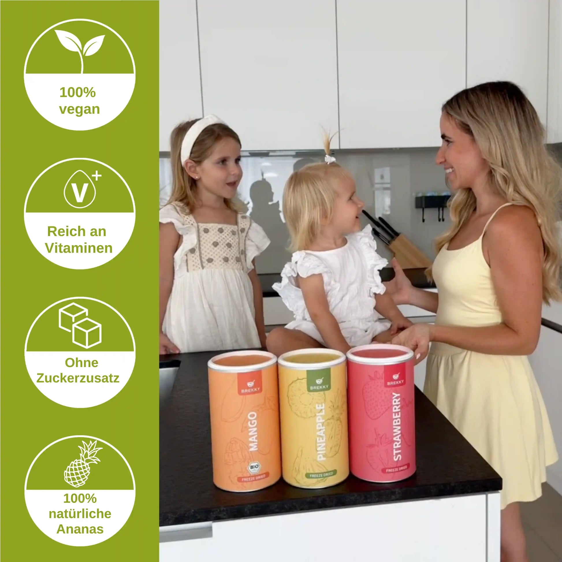 Absolut! Gefriergetrocknete Früchte sind ein natürlicher Snack ohne Zuckerzusatz und daher eine gesunde Wahl für Kinder. Sie sind leicht, praktisch und schmecken hervorragend. Hier findest du sie im praktischen Brekky Gefriergetrocknete Früchte Probierpaket 🍓🥭🍍